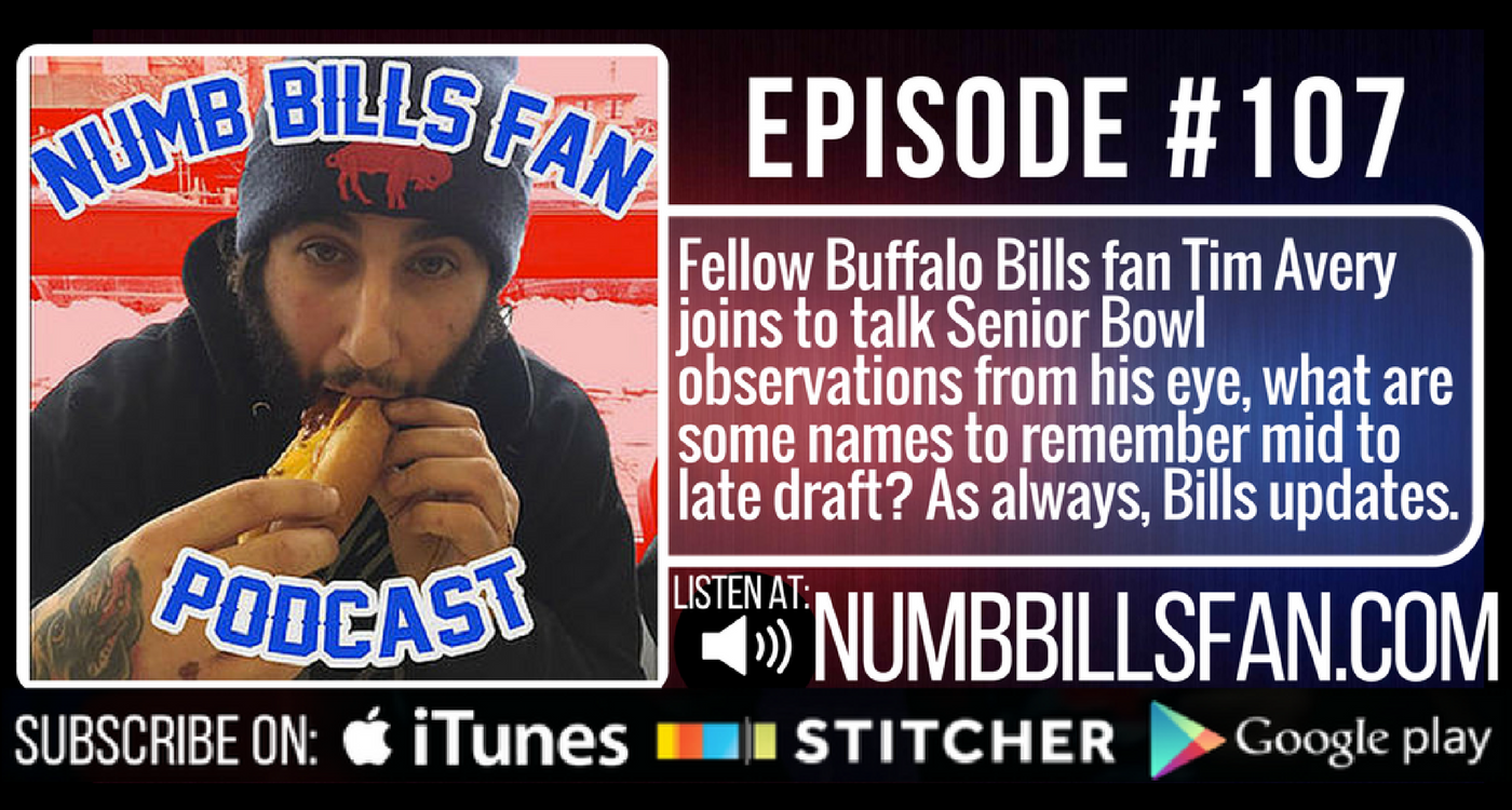 Fellow Buffalo Bills fan Tim Avery joins to talk Senior Bowl observations from his eye, what are some names to remember mid to late draft? As always, Bills updates.
